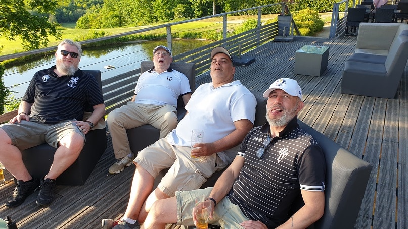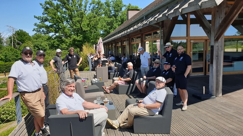 Après un pique-nique bien arrosé en plein cagnard à la Ferme de VILTAIN, nous nous sommes dirigés vers le Club House du Golf tout à côté pour une ultime collation avant de démarrer notre compétition annuelle à 14 heures sous un chaud soleil.