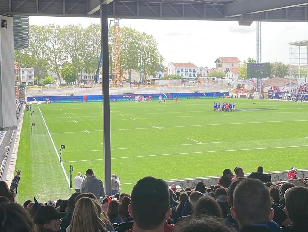La première période voit les deux équipes se séparer sur un nul 05-05 avec un essai sur l’aile gauche de Hillaire Perret contre un essai d’avant pour Tom Mylott, avant qu’il ne quitte le terrain avec une très grosse entorse…